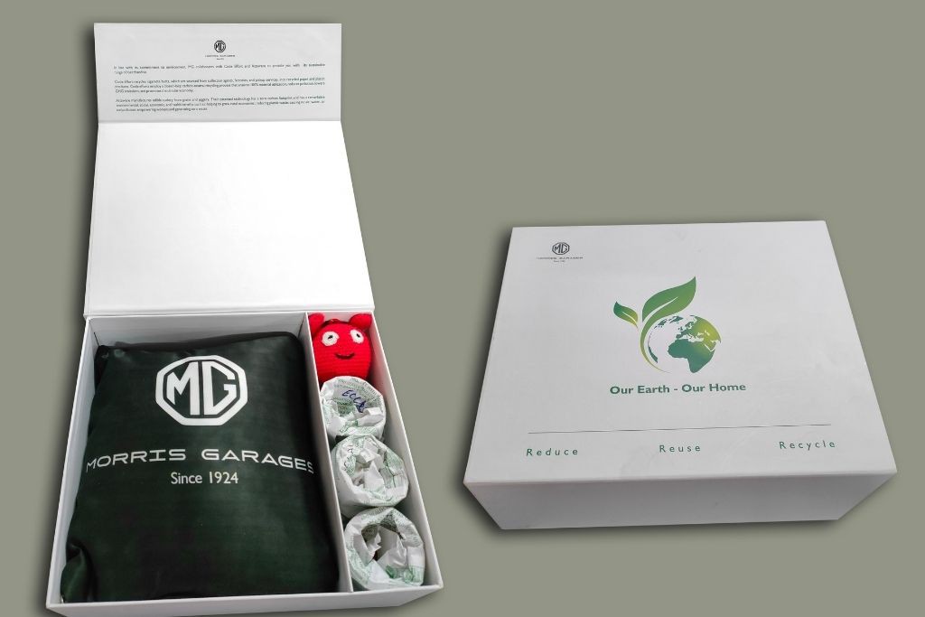 MG Motor India launched its first line of sustainable merchandise on Earth Day 2022. In line with their brand philosophies of building out a future that is sustainable, MG has partnered with with Code Effort and Attaware to launch products that are made from upcycled waste and biodegradable disposable material.